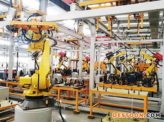 民用小型鍋爐爐體自動化焊接生產(chǎn)線正在進(jìn)行全面調(diào)試,該項(xiàng)目運(yùn)用45臺工業(yè)機(jī)器人、10套移載機(jī)、30套伺服變位機(jī)及全線自動化物流輸送,實(shí)現(xiàn)了年產(chǎn)30萬臺爐體產(chǎn)量。從板材開卷、沖壓成型、焊接、檢測等工序,實(shí)現(xiàn)了從原材料到成品的全自動化過程,可視化的操作系統(tǒng)可實(shí)現(xiàn)線體集中控制及線體狀態(tài)監(jiān)測。